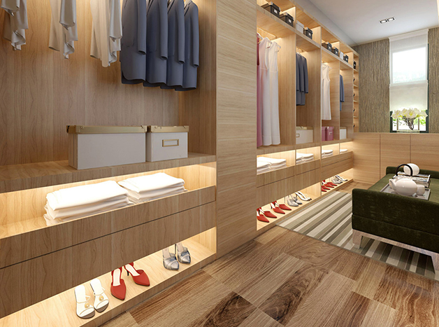 衣帽間是女人展現(xiàn)個人品味的重要區(qū)域,琳瑯滿目的衣服鞋子和包包可以巧妙利用隔板、抽屜等進行劃分從此告別雜亂無章。