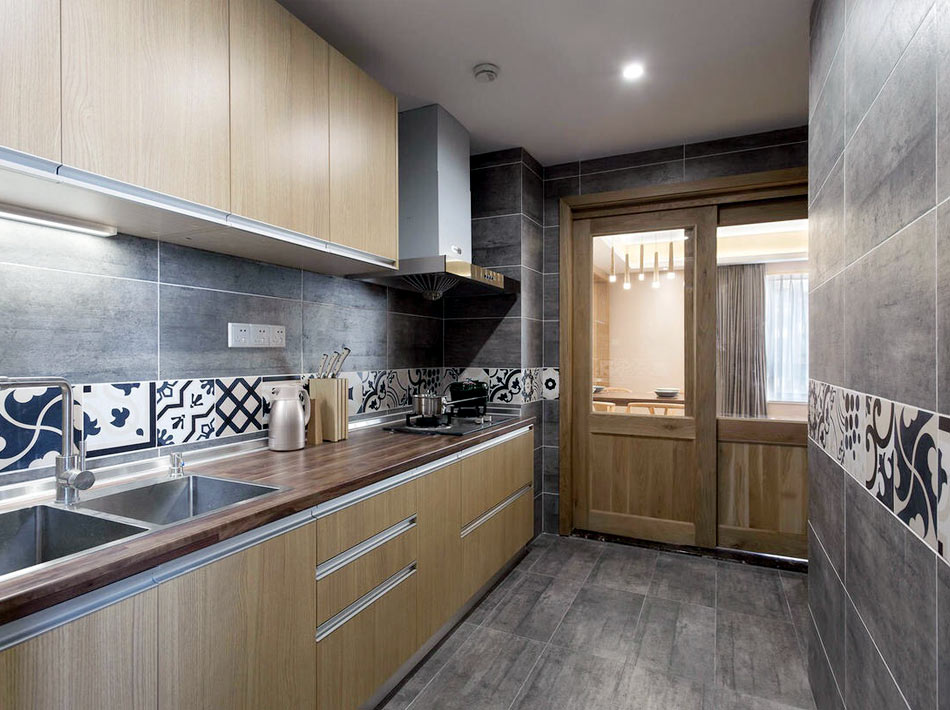 化繁為簡,用整體色調(diào)和材質(zhì)做插色搭配,墻體拆除后做墻面找平,修補(bǔ)基層遺留問題,用薄貼工藝調(diào)整墻面